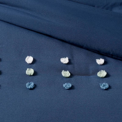 Create a pleasing and cozy ambiance in your kiddo’s room with this Pompom Comforter Set from Pillowfort™. This set includes one twin comforter and a matching sham, both made from a soft fabric blend with filling to help them stay cozy and comfy as they nap or drift off to dreamland. Designed in a solid hue, this cozy comforter and sham feature a tufted construction with stitched pompom accents forming horizontal stripes to add a touch of fun style to their bedroom decor. Coordinate these pieces with printed sheets, decorative pillows and stuffed animals to create a colorful, relaxing haven for your child.