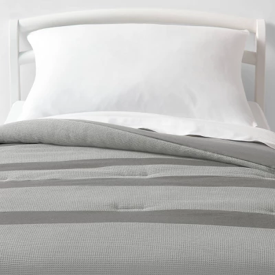 Elevate the look and feel of your toddler’s room decor with this Waffle-Striped Comforter from Pillowfort™. Made from a year-round fabric with soft filling, this decorative comforter adds a layer of warmth to their bed, helping them stay cozy and comfy as they catch a power nap or drift off to dreamland. In a solid hue, this cozy comforter features horizontal waffle stripe accents for a subtly textured look. Coordinate it with printed sheets, shams, decorative pillows and stuffed pillow buddies to create a colorful, relaxing haven for your child.