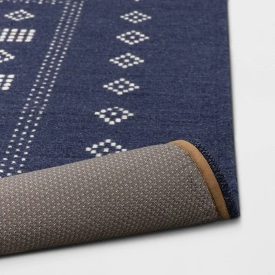 Add a touch of classic flair to your child’s room with this Vintage Rug from Pillowfort™. The rectangular area rug is adorned with white geometric motifs on a vintage-finish contrast-color background for an eye-catching look that goes with any decor style or color palette. The woven rug provides soft comfort underfoot, and the flat-pile construction makes it easy to clean and place anywhere in their room. Whether they lie on it to enjoy a fave book, play board games or watch TV, the decorative rug makes a fun and functional addition to your kid’s playroom or bedroom.